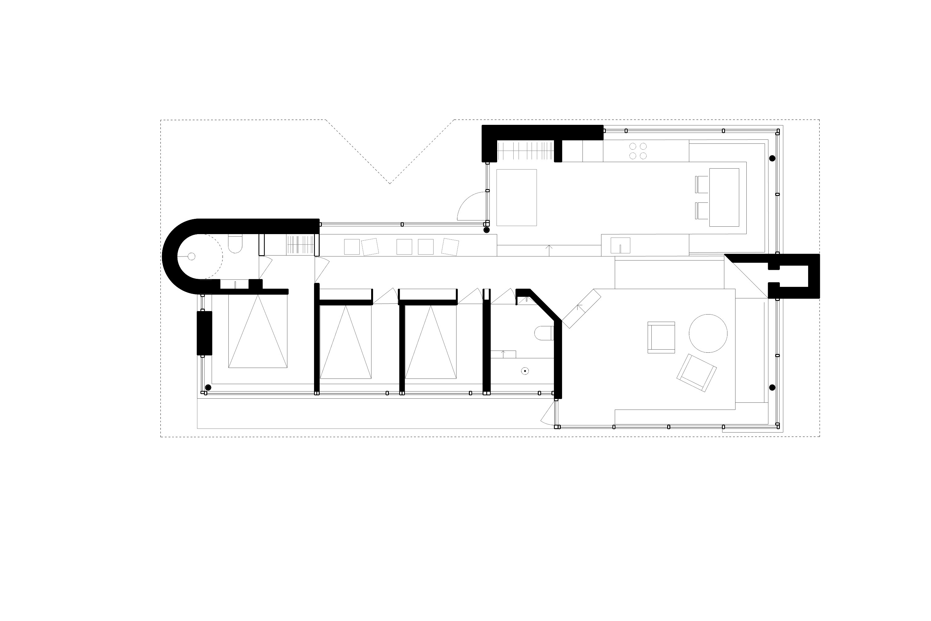 This new cabin is designed to harmonize with the natural terrain of Skrolsvika, Senja opening toward the sea and surrounding mountains. The structure follows the site’s landscape to minimize impact on the terrain, with terraced floors and two distinct roof volumes that reduce visual height. Large windows frame panoramic views, while exposed concrete inside and out is paired with warm timber details. The design emphasizes simplicity, integration with nature, and a strong connection to the dramatic coastal landscape.